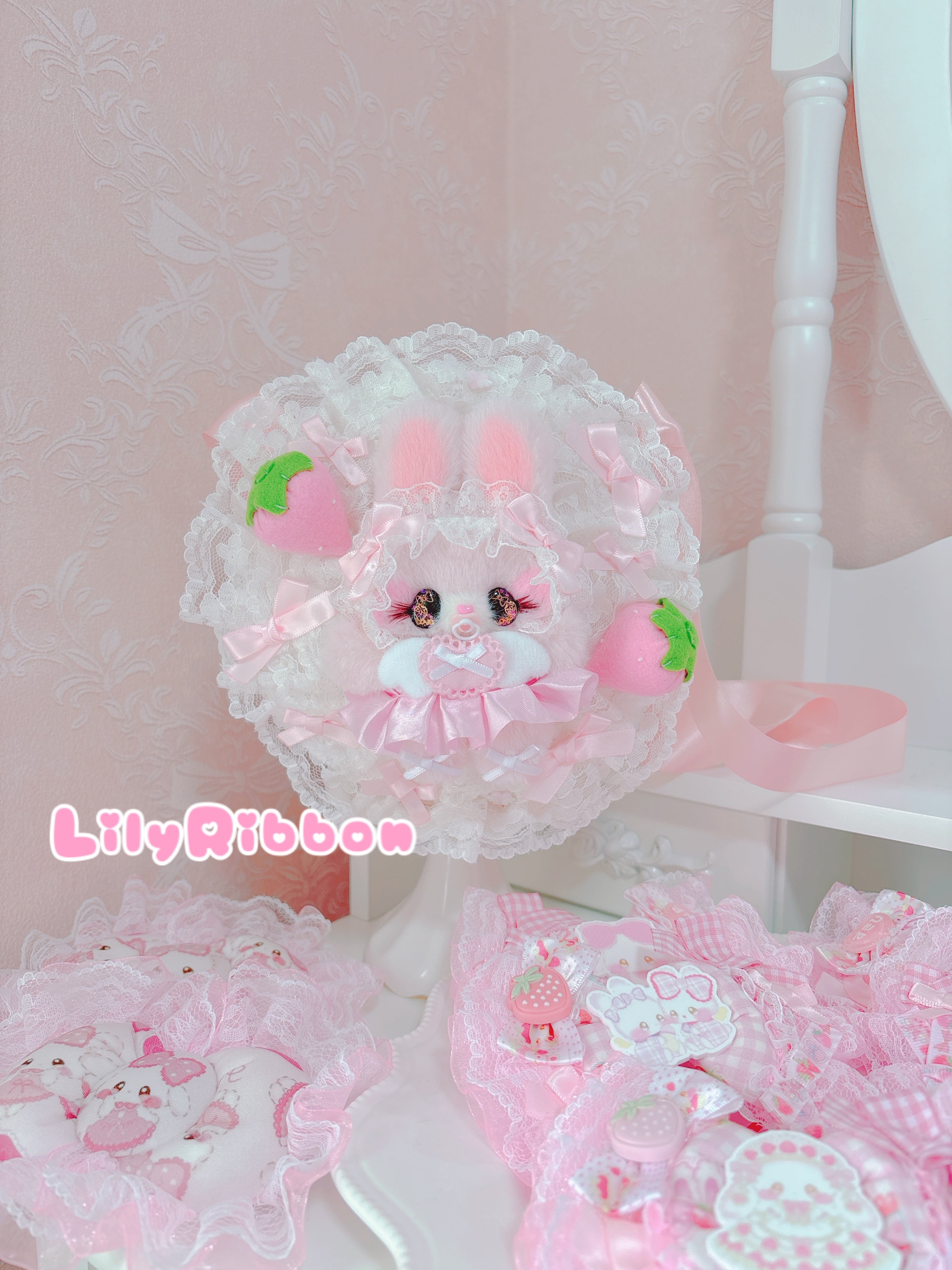 ふりふり♡♡ぬいぐるみショルダーバッグ♡♡いちご♡♡りりぴょん