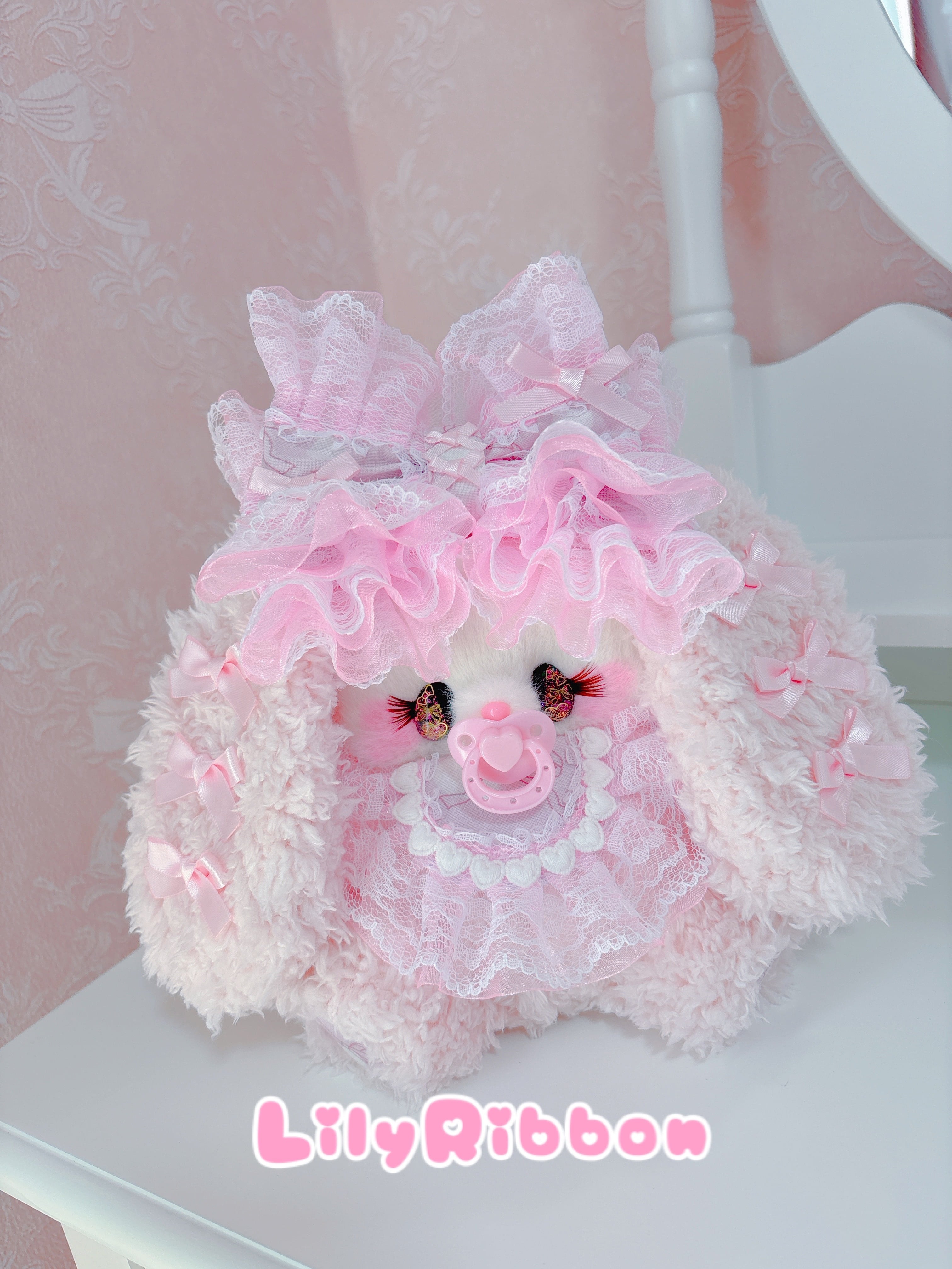 ♡♡ばぶばぶ♡りりぴょん♡おすわりぬいぐるみ♡ロップイヤー♡ふりふりリボン♡ピンク♡♡